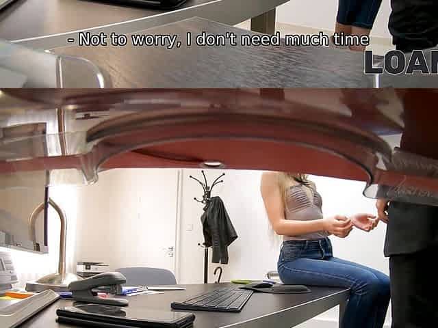 "LOAN4K. Sexy babes sweet crack is drilled by loan manager on the desk"