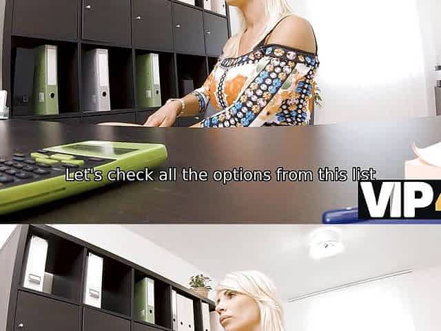 Busty Czech Blonde has playful mood for office sex with the money lender - Casting