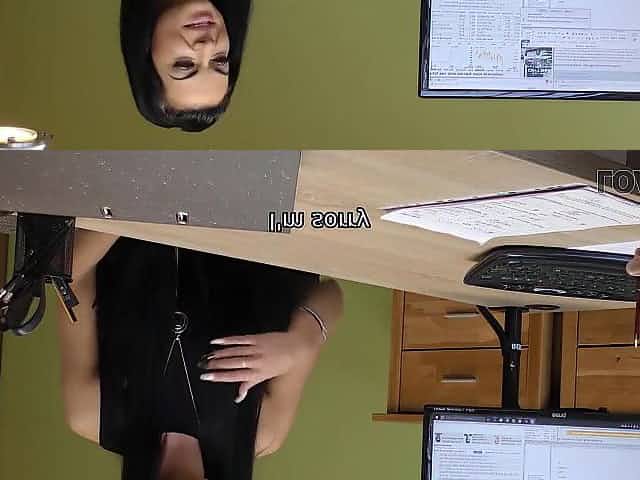 LOAN4K. Kinky brunette hair gets stripped and gets the loan that that babe needs