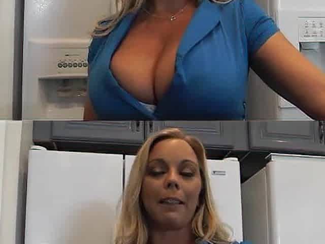 Tall MILF Lauren Phillips flashes her cleavage and gives an interview