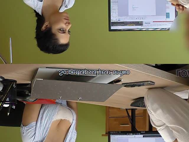 girl in glasses Lily Jordan gives interview and gets fucked hard