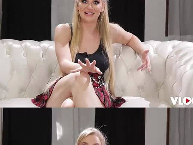 Curvy Blond Blake Blossom Takes Weenie Whilst On BTS Interview