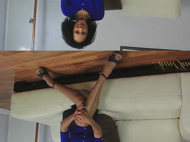 Natalia interviews for AuntJudys.com, and spreads her legs.