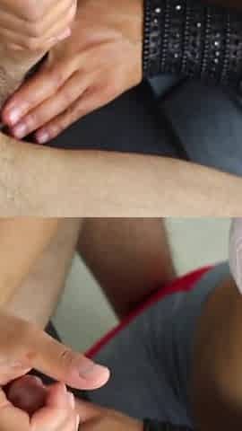 Make him cum hard with the most excellent tugjob and feetjob
