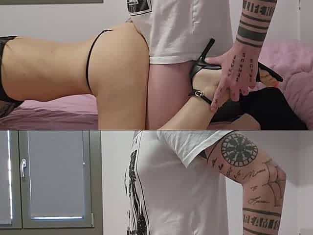 MOGLIE ESIBIZIONISTA si fa scopare duramente A PECORINA sul divano - DIALOGHI ITALIANO Miele Blanco