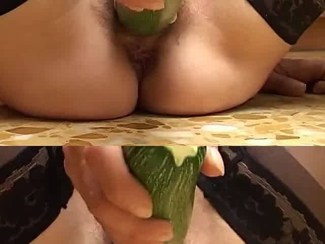 Amateur brunette fucks cock and a cucumber