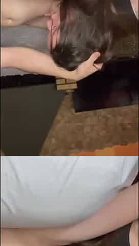 Hot brunette wife sucks her husband's cock with passion and then gets nailed hard in bed