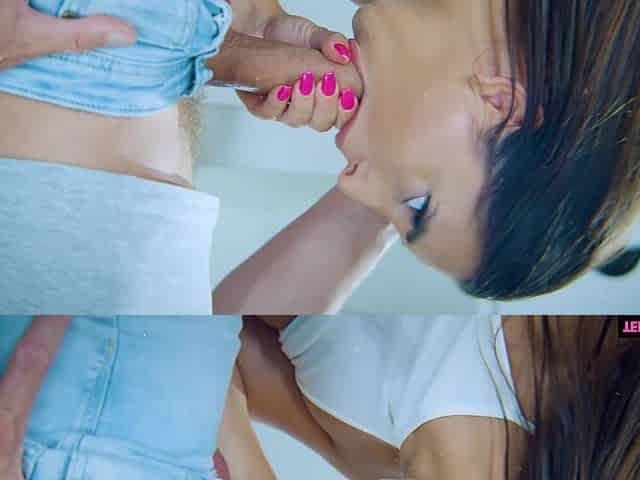 Amateur Italian Threesome POV Blowjob with Cumshot