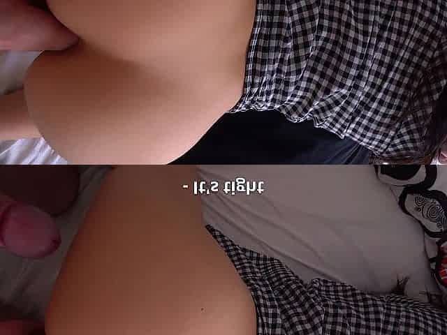ITALIAN - becca il figliastro segarsi e lo costringe a sborrarle nel culo ( anale italiano )