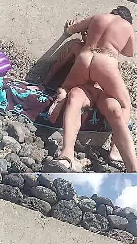 Pompino in spiaggia di nascosto