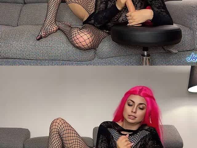 la pazza bambolina Jenny Pink mi fa una sega con i piedi e succhia il mio cazzo