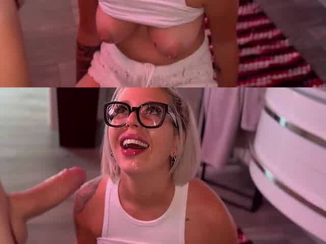 Big-Titted Italian Swallows Cock After Work