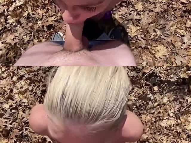 Bella biondina italiana spompina uno sconosciuto nel bosco
