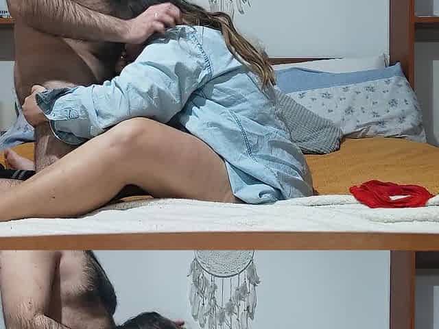 Coppia si riprende sul letto mentre lei gli fa un pompino fino a farlo venire di brutto