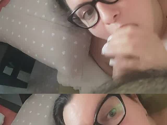 Coppia si riprende sul letto mentre lei gli fa un pompino fino a farlo venire di brutto
