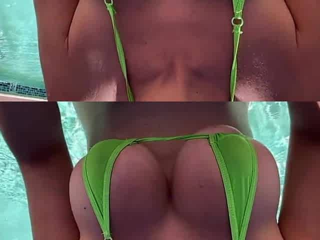 European Stepmom Artemisia Love showing her wet bazookas in a bikini in the pool