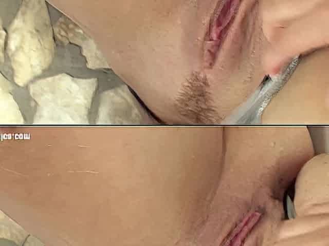 Playful blonde with perky boobs makes herself cum hard by the jacuzzi