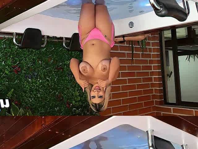 Colombiana rubia de tetas grandes se aprovecha del tecnico del jacuzzi y se lo folla - Naty Delgado