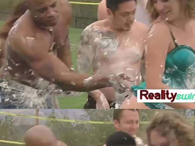Jacuzzi time with horny swinger couples at the mansion