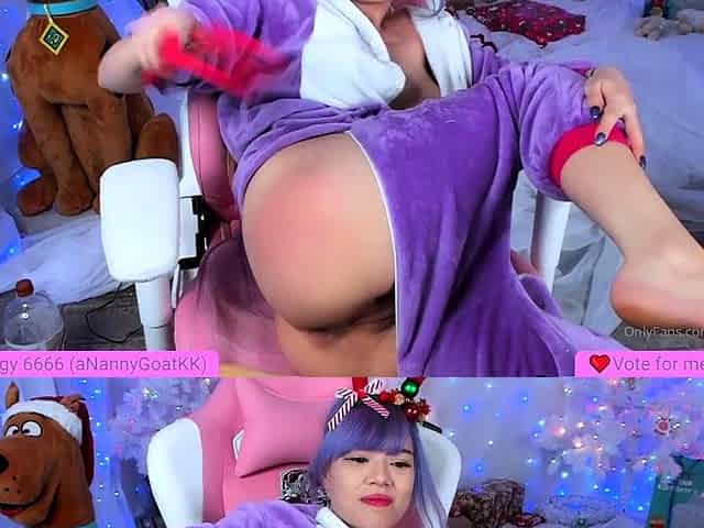 Naughty amateur asian slut opens hairy pussy for huge toys