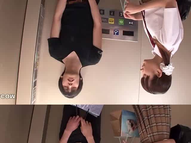 Japanese Babe got stuck in between elevator door & have sex with stranger