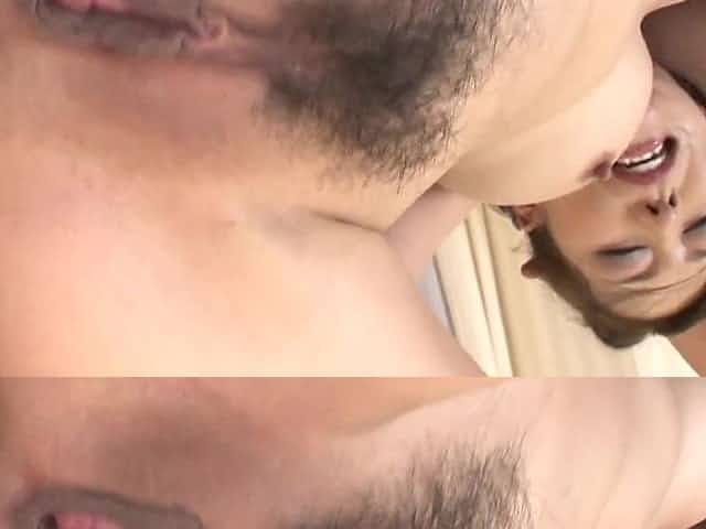 Flexible Japanese temptress with small tits having a hot MMF threesome