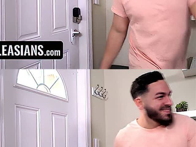 Lucky Dude Caught His Big Assed Roommate Playing With Her Vibrator And Helps Her Cum