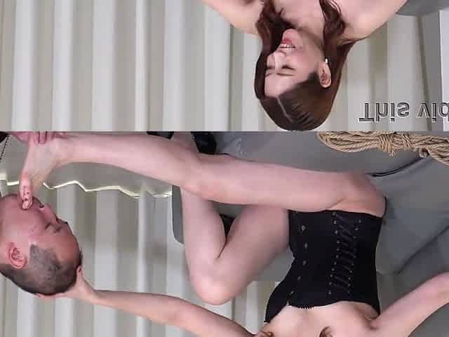 Mistress Reika uses a domestic submissive as a toy, making him lick her heels and feet