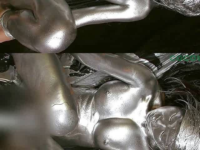 Oiled Asian chick gets dominated by few horny guys - Part 1