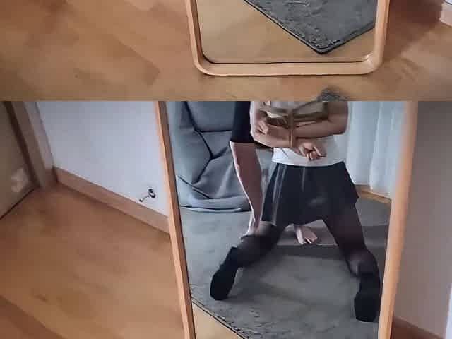 Two Chinese Girls Tied, One Wearing Cloth Mask