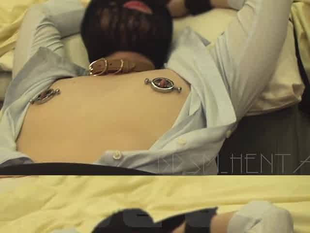 Restraint bullying: Nipples crushed by instruments. Nipple orgasms. And the pussy wriggles arbitrarily and she cums again.