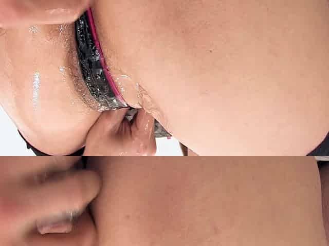 Tied up Japanese babe squirts while two guys satisfy her hairy pussy with vibrators