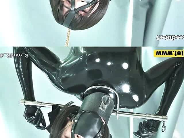 "Fejira com The girl who was locked up in a latex suit was played to orgasm"