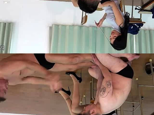Sadistic Female Boss Punishes Leg Fetish Masochist Employee with Otk Spanking, Slapping, and Face Trampling