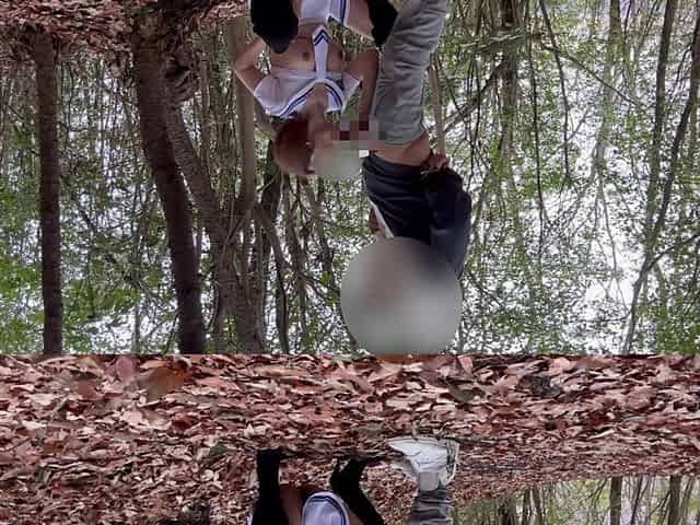 Brought a japanese schoolgirl to his favorite place in the forest and fucked and creampied her standing