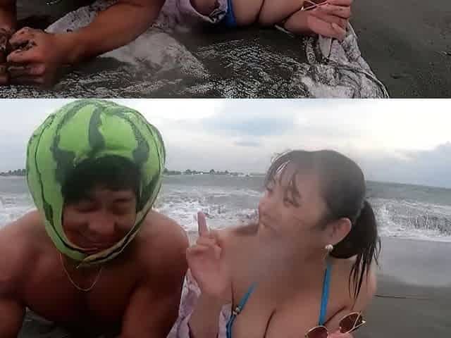 Kカップ爆乳ビキニ美女、パイ揉みでローション塗られて、エロムード高まりフェラ