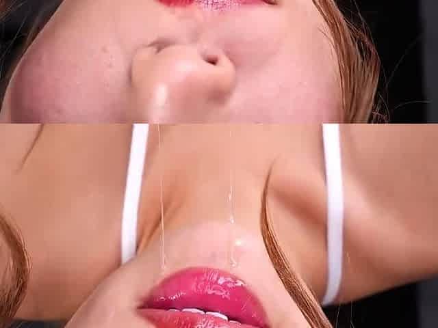 Incredible Airu Oshima from Japan takes on a massive load with her huge tits!