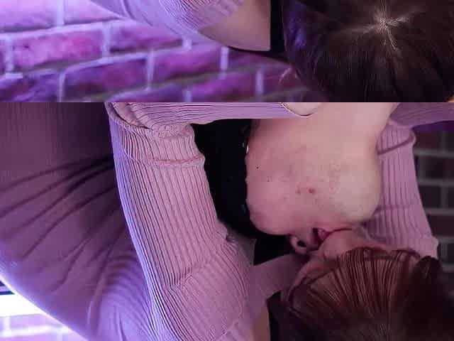 Small titted teen sucks upside down