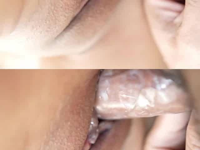 Juicy small asian pussy gets penetrated with a big cock, that creampies it