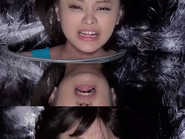 Cute Japanese girl with bob cut Madoka Adachi gets shaved pussy stretched