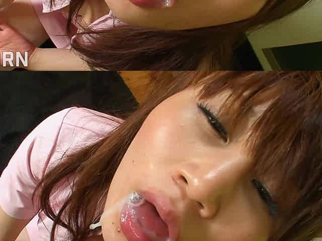 Hot Manami Komukai gets her magnificent face busted with a white pearly fountain of jizz in this scorching JAV XXX scene!