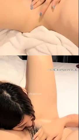 Attractive Asian molly rubs her slick pussy and has lesbian sex with her partner