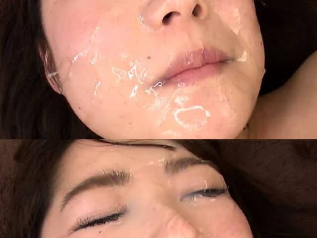 Horny Japanese babe with cum on her big tits