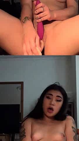 Solo small tit asian girl toying her pussy with vibrator
