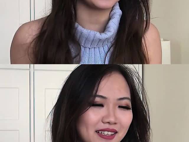 Solo Asian girl opens her legs and inserts a dildo in her cunt