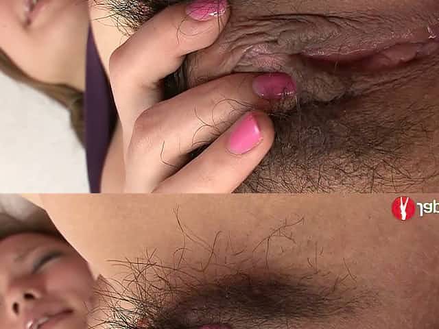 Skinny Japanese bitch caresses her hairy pussy until it gets completely wet.