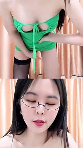 Petite Asian babe babe in stockings solo pussytoying