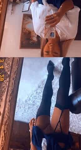 Japanese woman in a see-through T-back panty masturbates solo on webcam.
