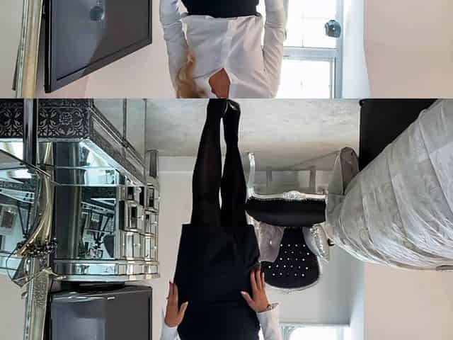 Girls Only Apartment in Japan, a Room Where Girl Doing Sexy Fitness in a Sexy Mini Dress, Thong and Black Fishnet Stockings
