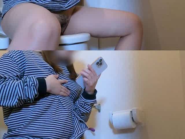 Japanese girl Mayu Jp enjoys some solo play in the bathroom while watching adult videos